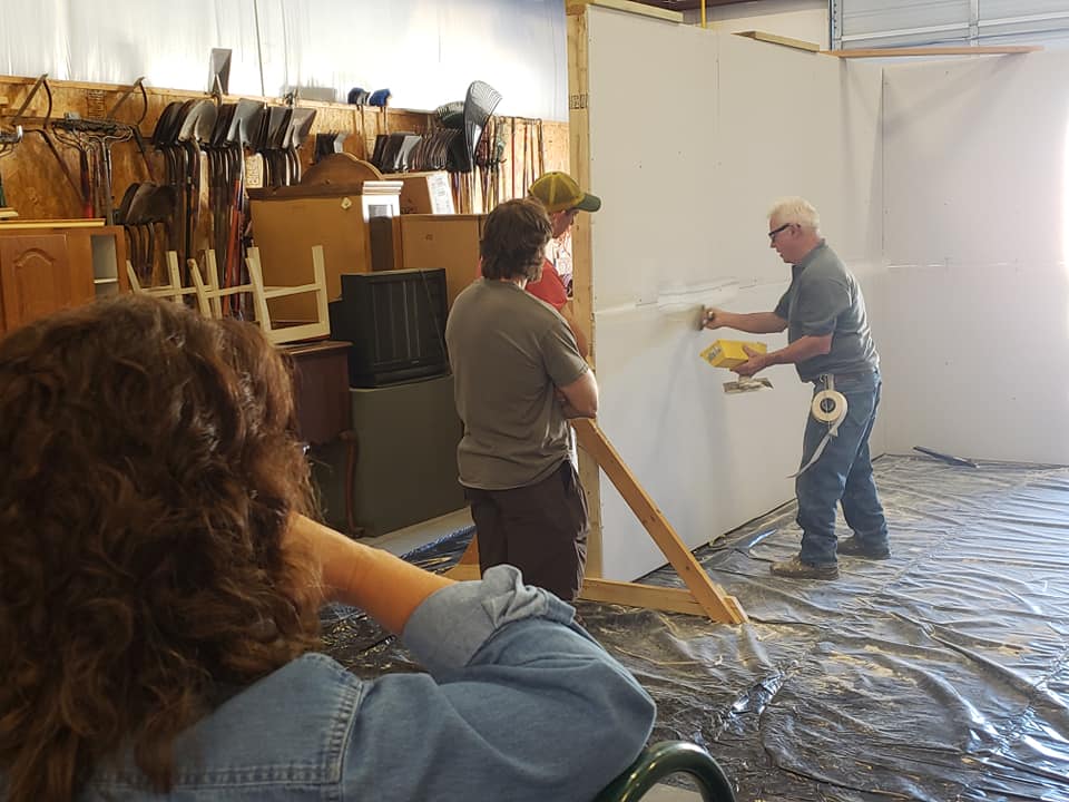 Shelby Mission Camp has two new metals buildings on 12 acres of land with another 30 acres for future development plans. We have one building which is used to house, feed and sleep up to 200 mission volunteers per day. The other building is used to store buildings materials and tools. The dedication of the Shelby camp was on April 29, 2012.