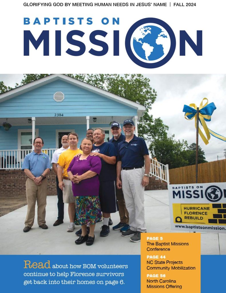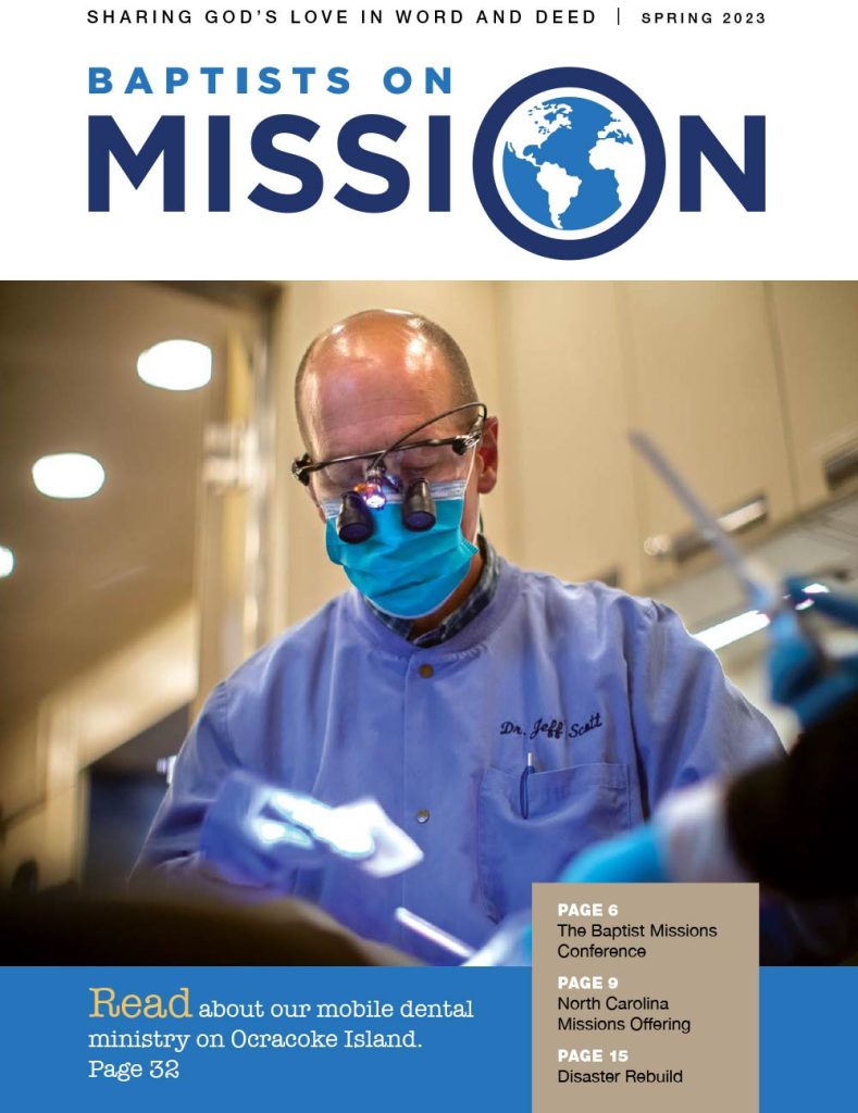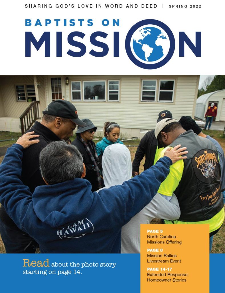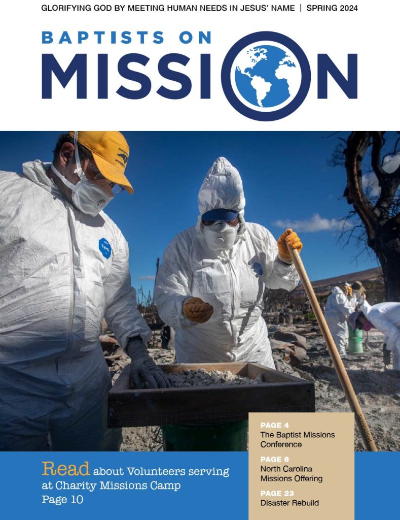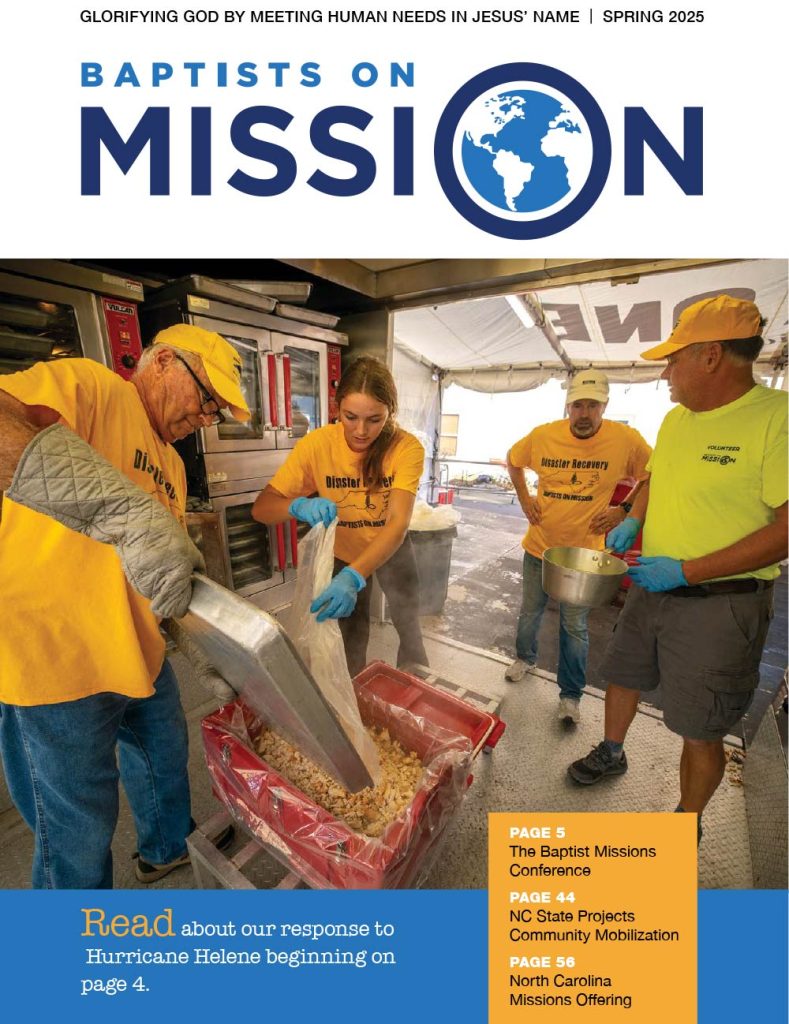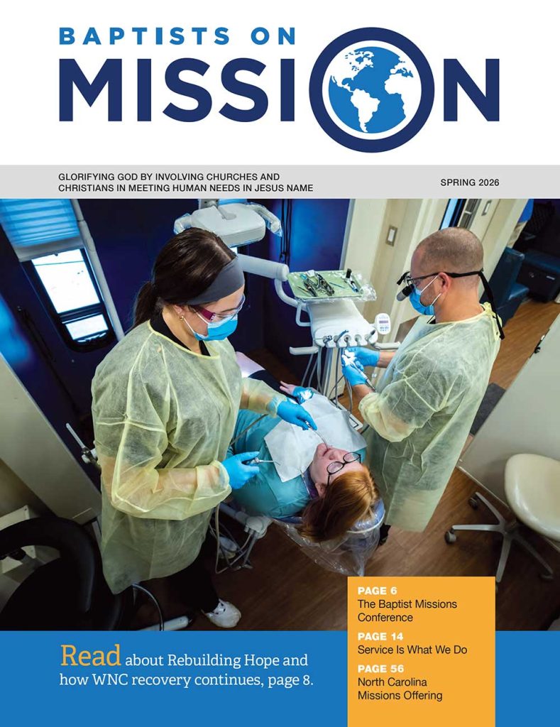 The Spring 2026 issue of Baptists on Mission highlights how God is glorified by involving churches and Christians in meeting human needs in Jesus’ name, featuring ongoing western North Carolina rebuilding, missions ministries, and statewide outreach efforts